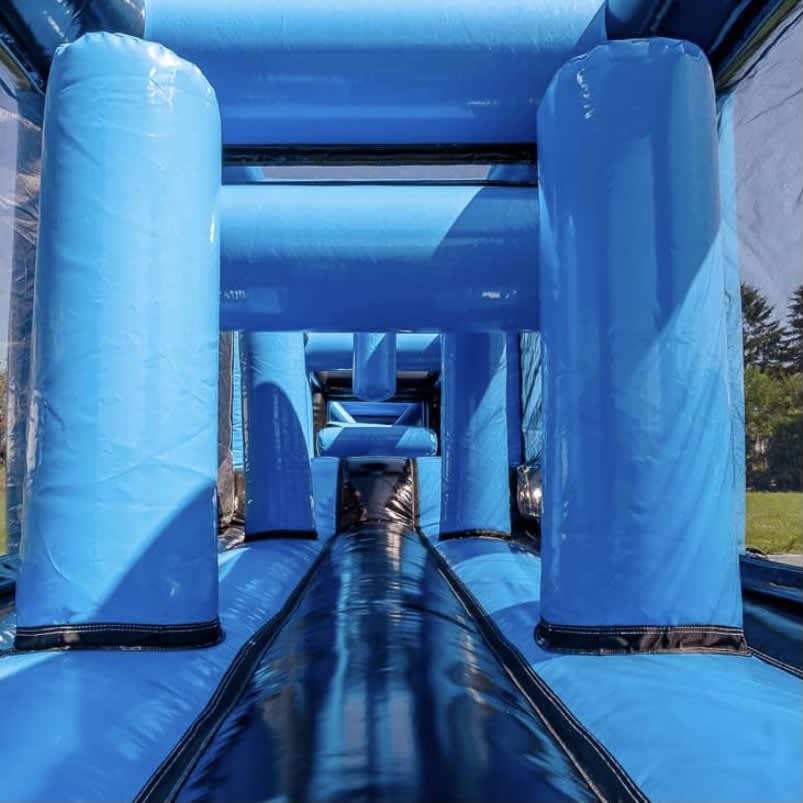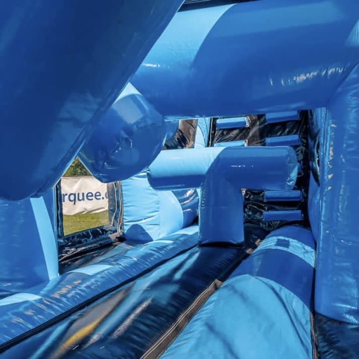 The design of the 60ft Lightning Part Obstacle Course is as striking as its size. Adorned in bold blue and black colours and featuring a dynamic lightning theme, it stands out and draws attention from afar.