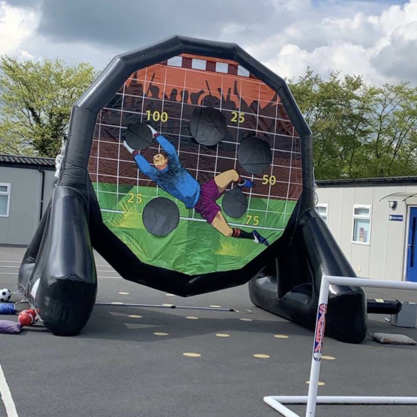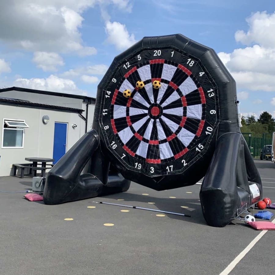 This inflatable dartboard is huge, standing at a staggering 15ft in height! Its sheer size and eye-catching design make it visible from afar, drawing participants and spectators alike. The game comes complete with Velcro footballs; players kick the balls at the giant dartboard, aiming for the highest score. After the shootout, a large hoop stick is provided to easily retrieve the balls, keeping the game flowing.