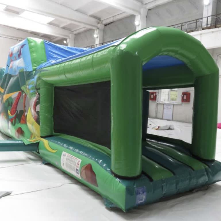 Step back in time to a world of dinosaurs with our 1 Part Dino Obstacle Course, one of the greatest additions to Rascals Castles Mid Ulster's obstacle courses for hire. This thrilling inflatable is now available in towns like Antrim, Cookstown, Randalstown, Ballymena, Magherafelt, Belfast, and throughout Mid Ulster. We are proud to be one of the largest hirers of Obstacle Courses in these areas.