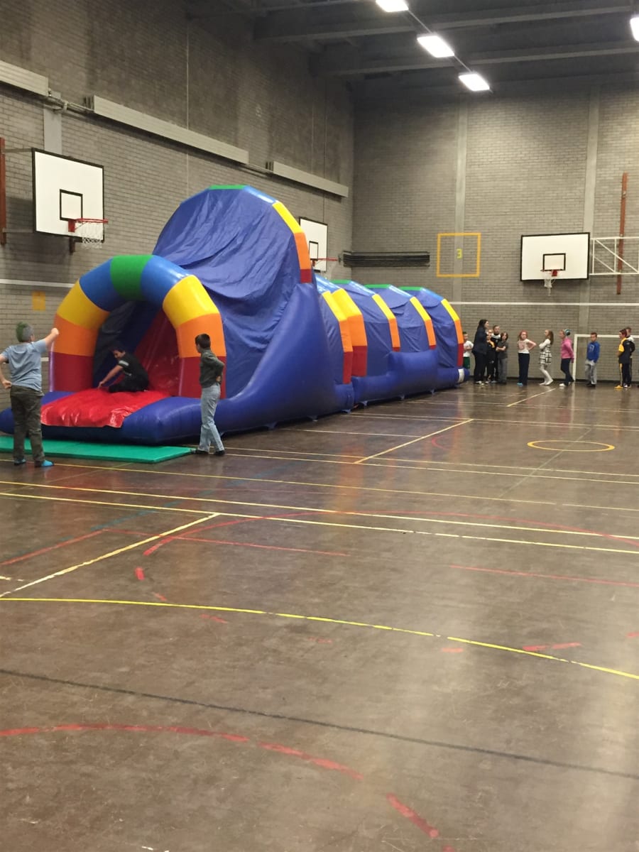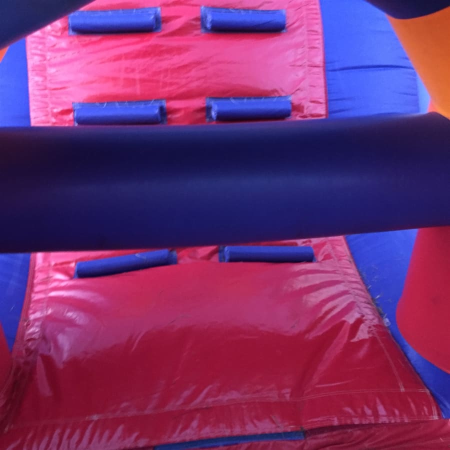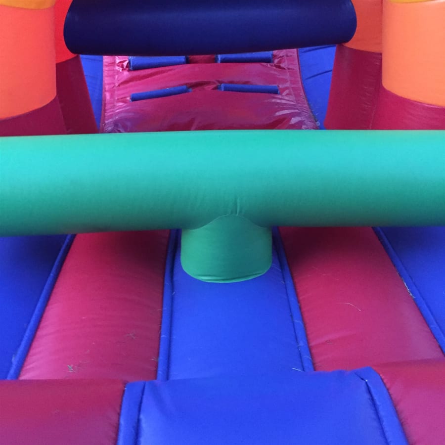 As participants embark on this fun run, they'll be greeted by a series of multi-coloured bish bash posts, adding a playful start to the adventure. The journey continues with a raised crawl area, challenging and delighting kids as they navigate through it. Next, they encounter 2 over and under rollers, testing their agility and adding to the fun. The climax of the course is the wall climb, leading to an exhilarating exit down the 8ft slide.