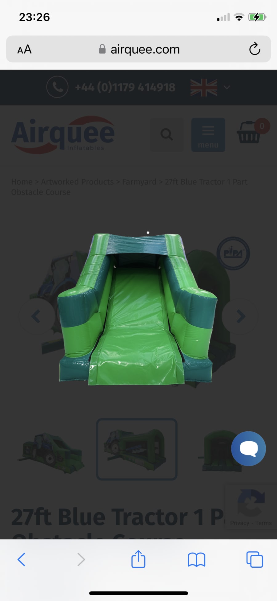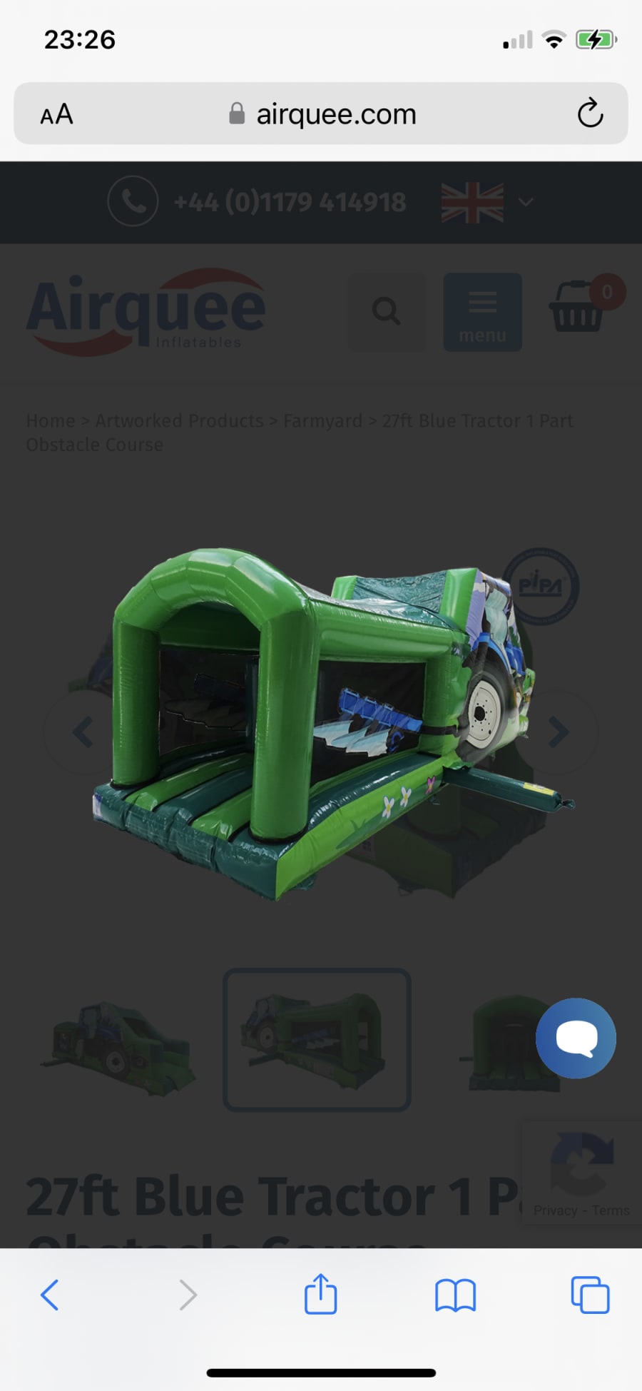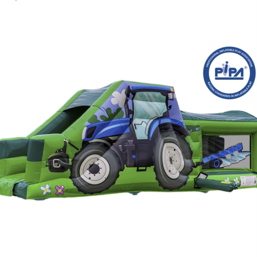 The 1 Part Blue Tractor Obstacle Course combines the thrill of a bouncy castle with the excitement of a slide, creating a versatile and enjoyable experience for children.
