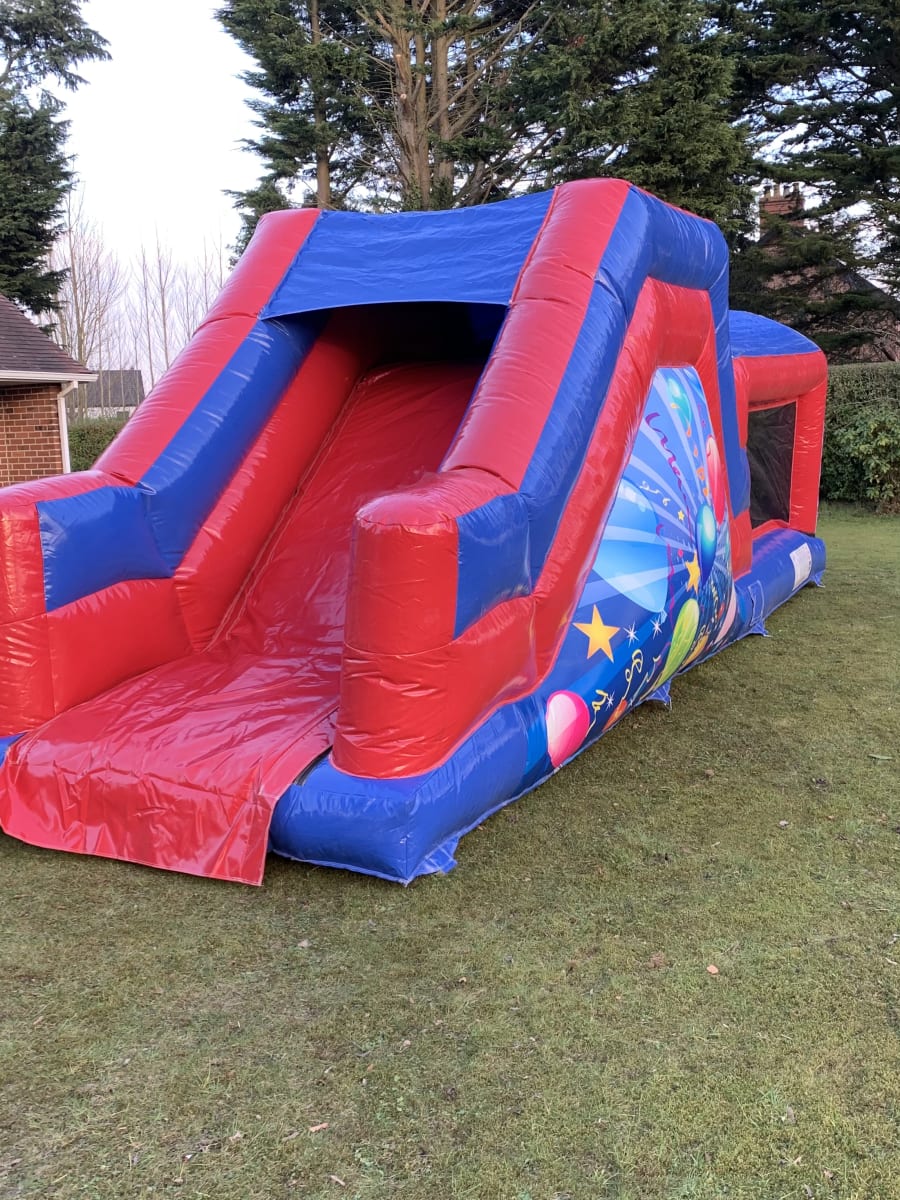 The 1 Part Party Obstacle Course is an all-in-one entertainment solution, ideal for both boys and girls. It combines the joy of a bouncy castle with the thrill of a slide, making it a versatile choice for any party. This obstacle course is more than just a play area; it's a mini adventure land where children can jump, play, and slide to their heart's content.